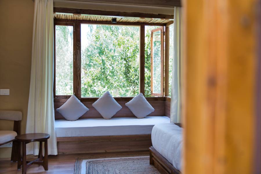 +91 7428692717, 9797752864Experience refined comfort in our Super Deluxe Room, designed for a luxurious and relaxing stay. These spacious rooms are elegantly furnished with premium bedding, modern amenities, and tasteful décor that reflects the serene beauty of Ladakh. Large windows allow natural light to pour in, offering picturesque views of the surrounding landscapes. Ideal for travelers who seek a touch of sophistication, the Super Deluxe Room ensures a stay filled with comfort and elegance.